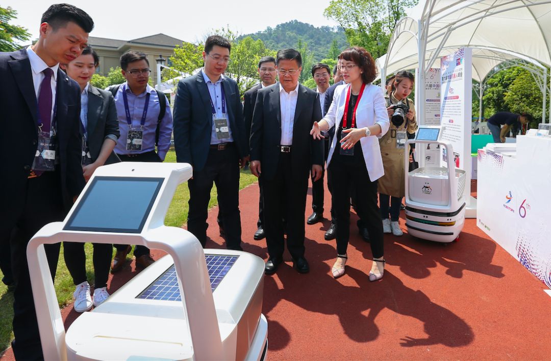 浙江省人民政府副省长高兴夫体验了小远智能服务机器人“智慧+政务”互动场景,对“小远”助力“最多跑一次”,为老百姓带来更亲和、便捷、智能的政务服务,表示了肯定。