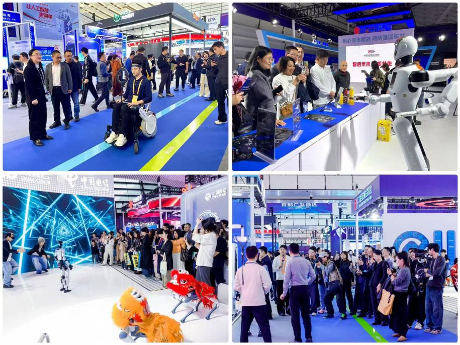 本届博览会着力营造零距离、沉浸式的AI“未来感”观展氛围,首次引入机器人导览与讲解系统,在开幕式环节亮相人形机器人,并推出智能体手环等互动设备,极大提升了观展的科技体验。浙江省互联网协会会员代表们深入各展区,系统了解具身智能、量子科技、AI生态等前沿领域的最新成果。展区内形态多样、功能各异的机器人成为全场焦点。机器人舞狮结合“科技+非遗”,表演灵动有趣,引来阵阵喝彩;机器人拳击赛现场气氛热烈,灵巧的动作控制展现高水平技术能力;机器人售货员根据自主扫码下单,精准拿取所售商品;智能脑控轮椅,可根据使用者脑中指令,实现行驶轨迹控制……丰富多样的互动场景,让大家深刻感受到了科技改变生活的力量。