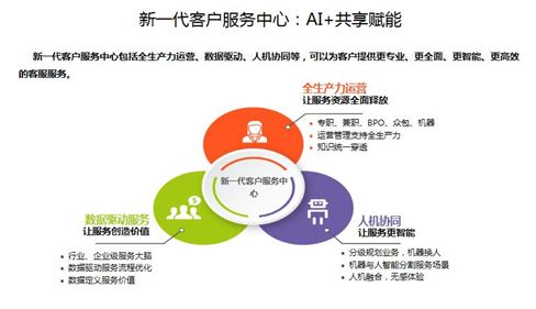 第三个特征也是下一代客服中心必须具备的要素和能力,就是全生产力运营,让服务释放生产力。这涉及专职、兼职、业务外包,通过共享经济把业务众包,把机器设备跟生产力打通。