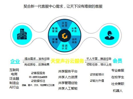 去年,我们尝试一个平台,叫做“天堂声谷”云众包。我们集合社会上愿意从事客户服务行业的资源,经过培训认证开放到公共服务平台,为企业提供客户服务,弥补高峰时期服务能力缺失。并在“天堂声谷”云众包平台上提供培训、人工智能基础能力等,还为客户提供机器人免费租用。在整个平台,开放地把整个客户服务提供给企业级用户,让用户尽早体验新一代客服中心。