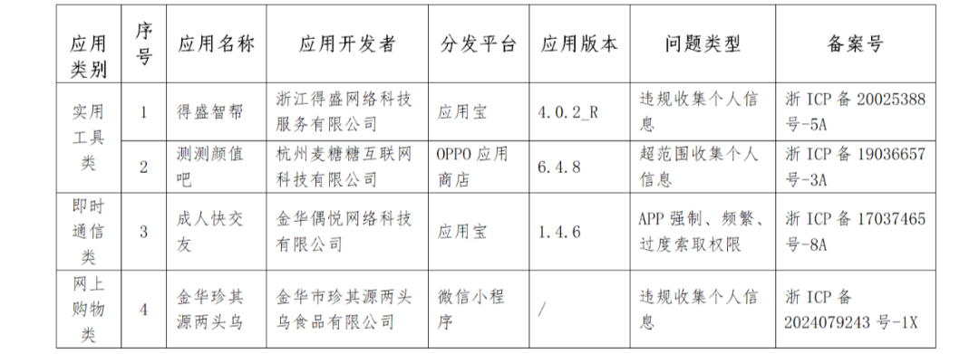浙江省通信管理局通报存在问题的APP(小程序)名单